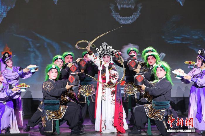 9月23日晚,浙江婺劇團雅加達專場上演。圖為經典大戲《三打白骨精》。中新社記者 李志全 攝