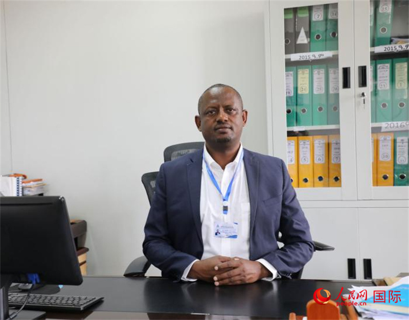 圖為聯(lián)合國(guó)工發(fā)組織埃塞區(qū)域辦事處國(guó)家項(xiàng)目官員阿塞吉德。人民網(wǎng)記者 沈小曉攝
