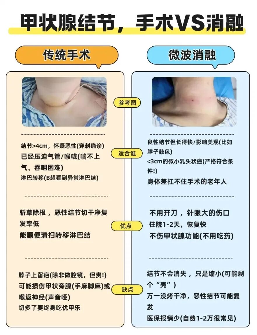 4.保留功能,無需終身服藥:消融過程只摧毀病變組織,最大程度地保留了正常的甲狀腺功能,絕大多數(shù)患者術(shù)后無需像傳統(tǒng)切除手術(shù)那樣終身服用甲狀腺素片。