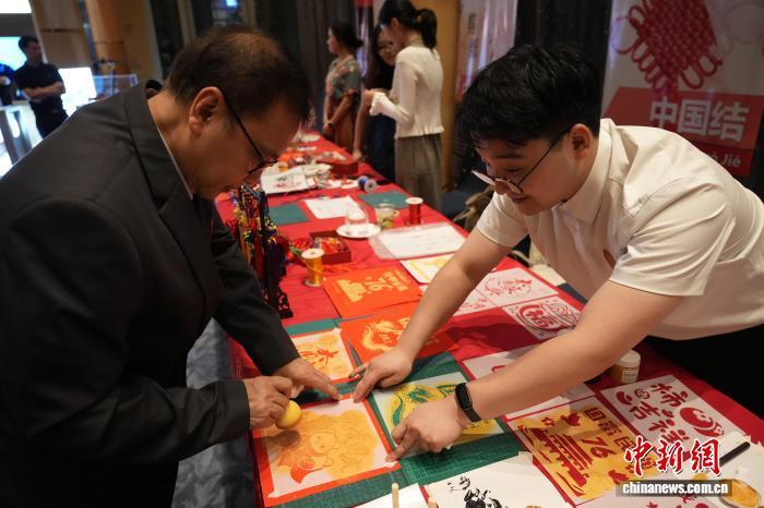 圖為嘉賓在中國文化展臺體驗(yàn)拓印。記者 張興龍 攝