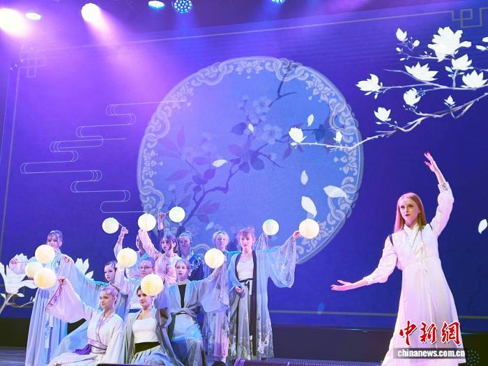 當(dāng)?shù)貢r(shí)間9月27日,“月滿華誕 同心共圓”中俄人文交流活動(dòng)在莫斯科548學(xué)校舉行。圖為俄羅斯學(xué)生表演“燈籠舞”。中新網(wǎng)記者 田冰 攝
