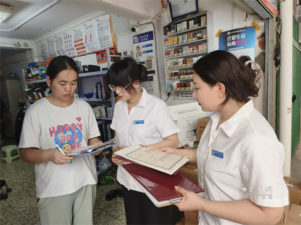 工作人員上門對(duì)商戶做政策宣傳。 通訊員供圖