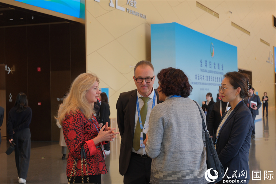 | 嘉賓在全球婦女峰會(huì)現(xiàn)場交流。人民網(wǎng)記者 宋美琪攝 |