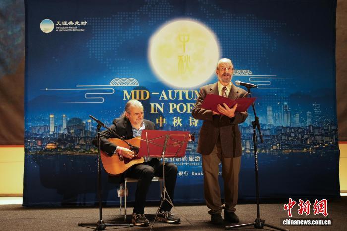 詩會以紐約市議員馬泰中英雙語朗誦的《靜夜思》開場。隨后,中美藝術(shù)家登臺,呈現(xiàn)了《望月懷遠》《春江花月夜》《水調(diào)歌頭·明月幾時有》等中國古典詩篇,以及美國詩人柯克·拉森(Kirk Larsen)創(chuàng)作的現(xiàn)代詩《中秋豐收將至》。