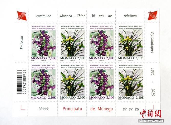 摩納哥發(fā)行的《中摩建交三十周年》紀念郵票全套兩枚,圖案與中國郵政發(fā)行的同題材郵票圖案相同,分別為風(fēng)鈴草(代表摩納哥)、春蘭(代表中國),由中國畫家閆平設(shè)計,寓意兩國30年友好交往的溫馨與生機。摩納哥郵政此前已經(jīng)對外公布了這套郵票的圖稿。