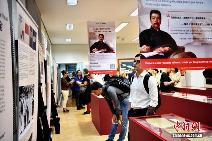 當(dāng)?shù)貢r(shí)間10月17日晚,巴西青年參觀“魯迅的文藝道路——不隔膜,相關(guān)心”展覽。中新社記者 林春茵 攝