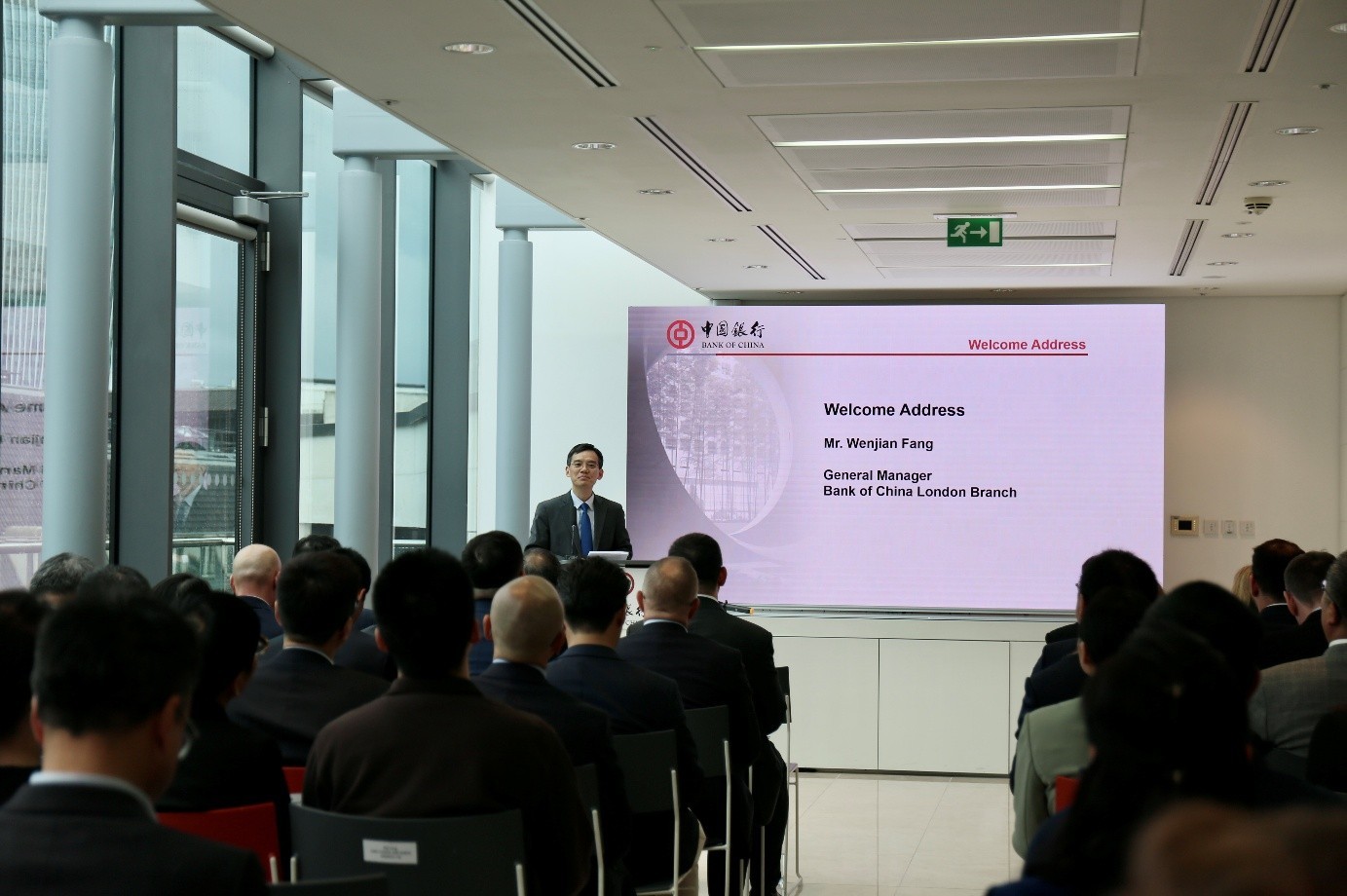 中國銀行倫敦分行行長方文建致歡迎辭。主辦方供圖