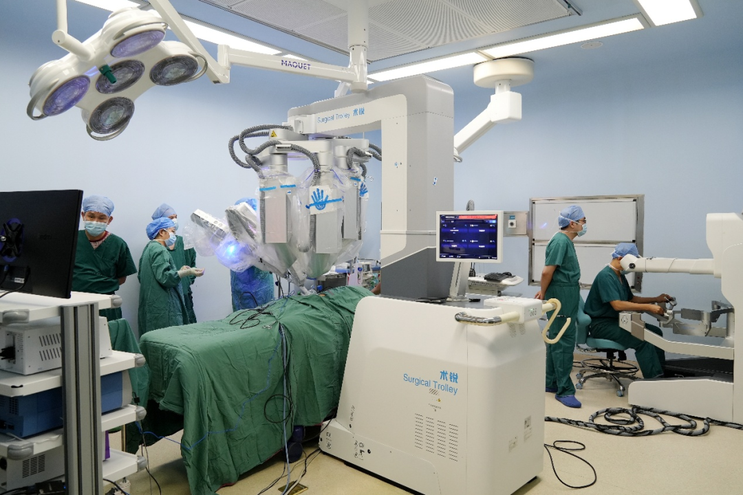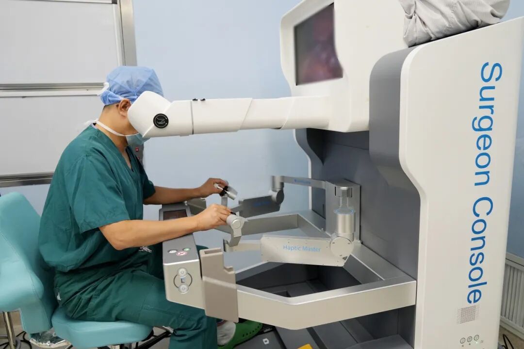 10月13日,在麻醉科、手術(shù)室等多學(xué)科團(tuán)隊(duì)的緊密配合下,小兒外科楊坤主任帶領(lǐng)手術(shù)團(tuán)隊(duì)正式開展手術(shù)。手術(shù)僅在患兒臍部作一個(gè)2厘米的微小切口,將機(jī)器人機(jī)械臂伸入腹腔。在楊坤主任的精準(zhǔn)操控下,靈活的機(jī)械臂在腹腔內(nèi)完成分離、切除狹窄部位、精準(zhǔn)吻合等一系列復(fù)雜操作。整個(gè)手術(shù)過程幾乎零出血,充分彰顯了機(jī)器人手術(shù)的微創(chuàng)優(yōu)勢。