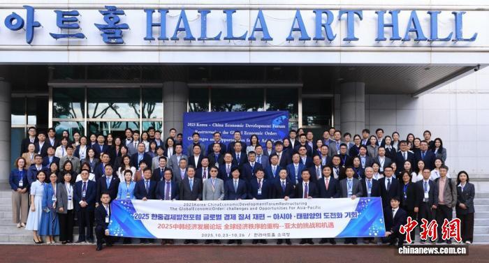 10月24日,2025中韓經(jīng)濟發(fā)展論壇在韓國濟州開幕。圖為論壇與會嘉賓合影。韓國京畿大學韓中經(jīng)濟發(fā)展研究所 供圖