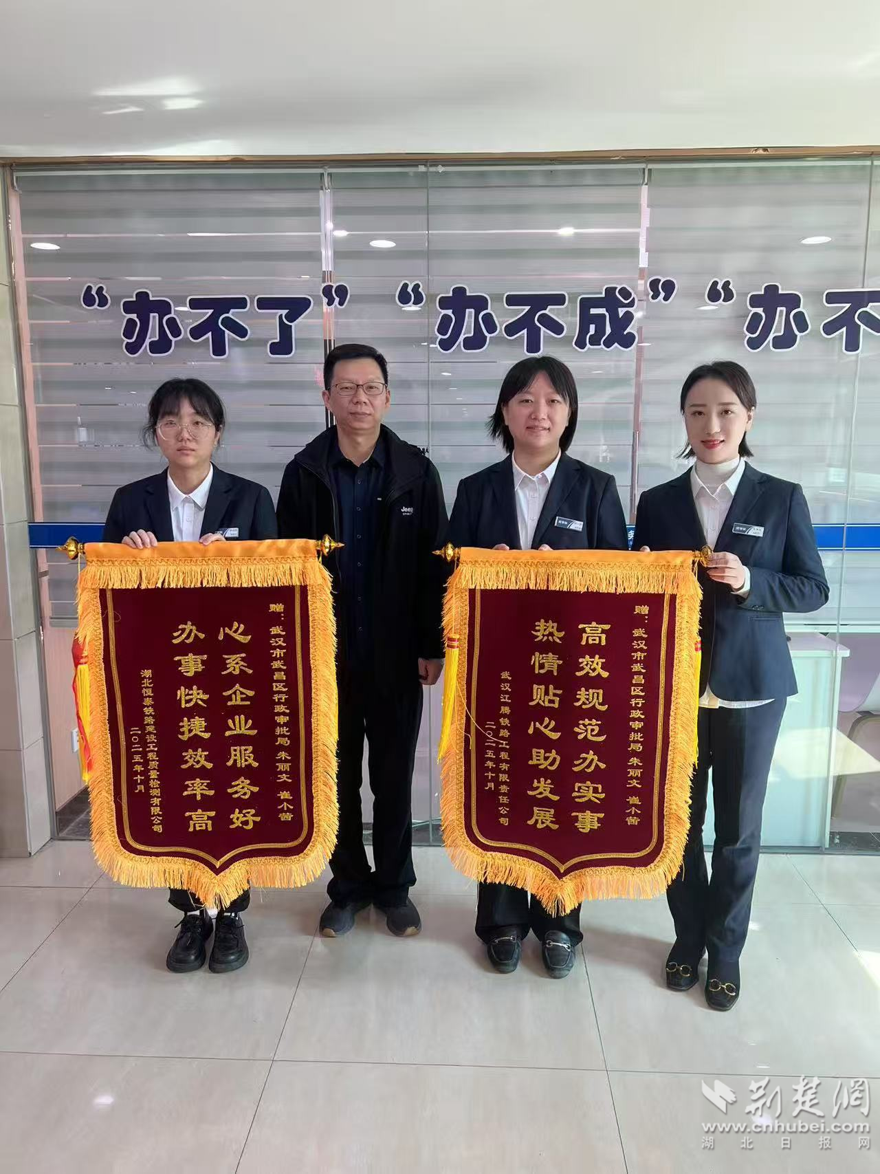 荊楚網(wǎng)(湖北日報網(wǎng))訊(記者 李燕 通訊員 李永波 王金丹)10月24日,中國鐵路武漢局集團旗下湖北恒泰鐵路建設工程質(zhì)量檢測有限公司、武漢江騰鐵路工程有限責任公司,順利辦結業(yè)務變更手續(xù)后,經(jīng)辦人董先生專程送來2面錦旗,向武昌區(qū)行政審批局工作人員表達謝意。