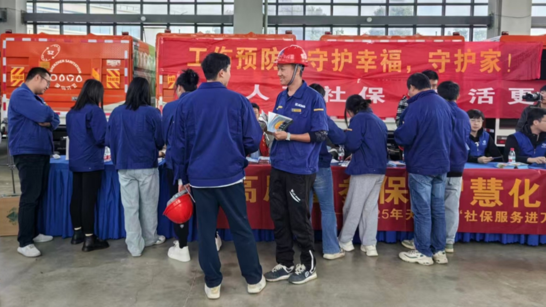 天門市走進(jìn)企業(yè),向徐工湖北環(huán)??萍脊煞萦邢薰締T工送上貼心社保服務(wù)。