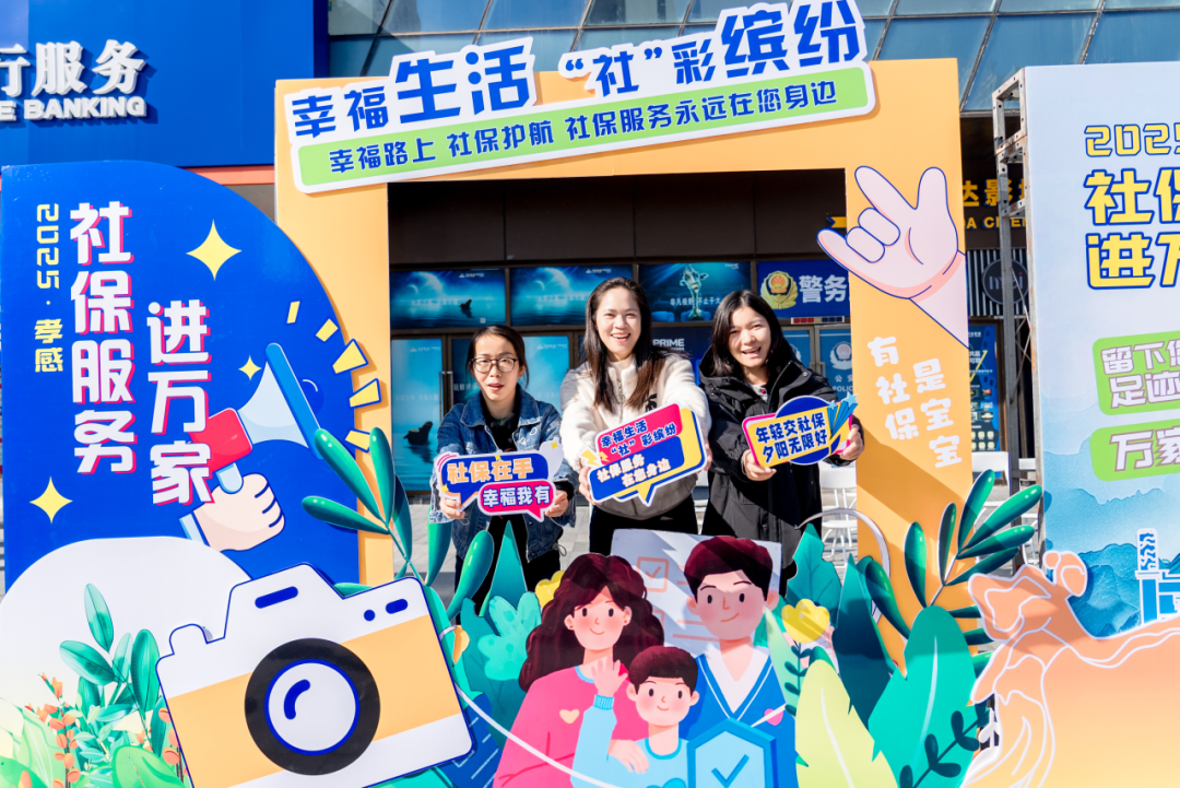 孝感市“社保服務(wù)進(jìn)萬家”活動啟動儀式現(xiàn)場,年輕人在打卡點留下幸福笑臉。