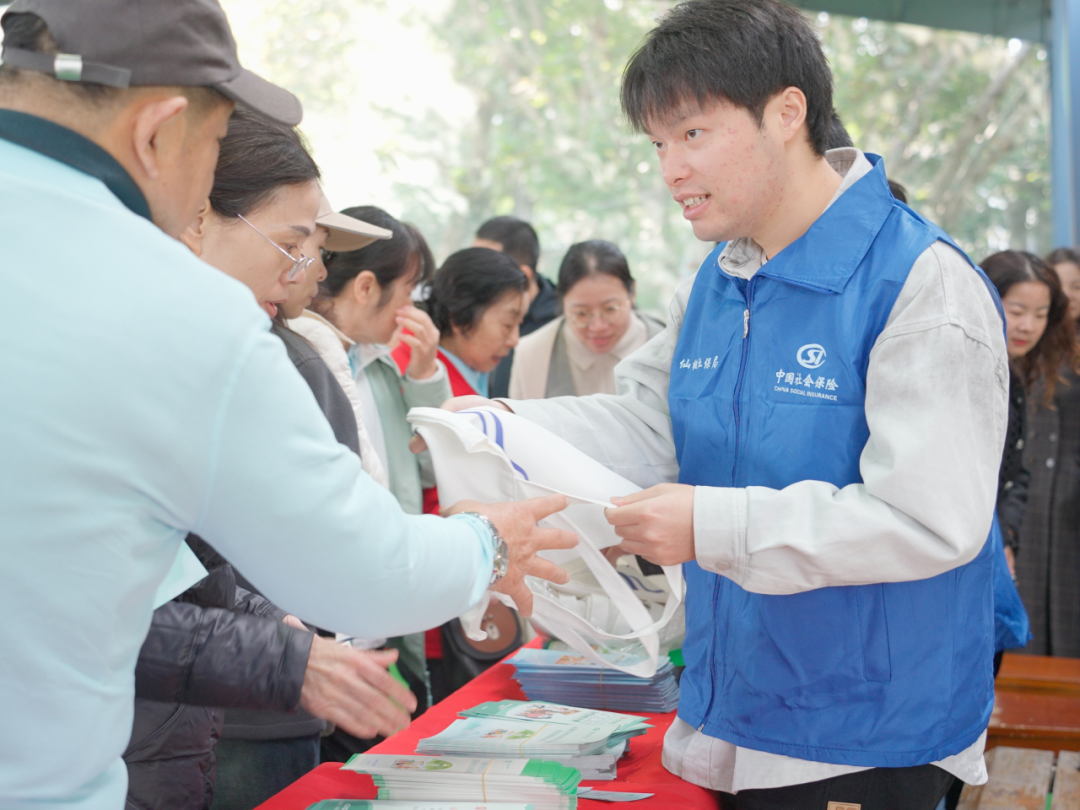 黃岡市“社保服務(wù)進(jìn)萬家”活動現(xiàn)場,群眾在社保政策宣傳展板前駐足觀看。
