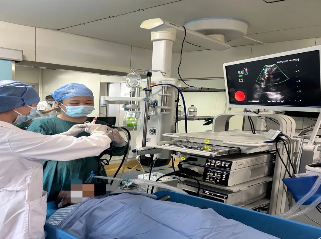 呼吸與危重癥醫(yī)學科副主任醫(yī)師劉鈞、主治醫(yī)師邱琦牽頭組建診療團隊,經(jīng)周密術(shù)前討論,決定采用全麻喉罩下超聲引導穿刺針建隧的縱隔淋巴結(jié)活檢技術(shù)(EBUS-TBNB)。
