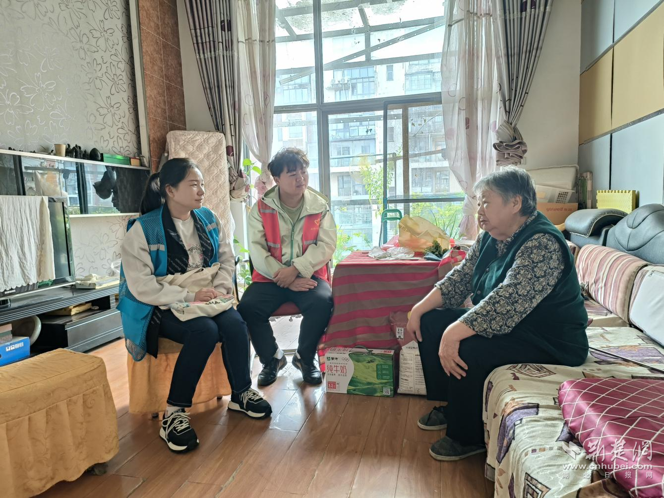 活動中,社區(qū)工作人員走進老年人家中,傾聽心聲、傳遞溫暖。在88歲胡婆婆家中,工作人員耐心細致地為其辦理了高齡認證,并與老人圍坐在一起拉家常,細心詢問他們的身體狀況和生活情況,送上慰問品與祝福,以實際行動詮釋社區(qū)的溫暖與牽掛。