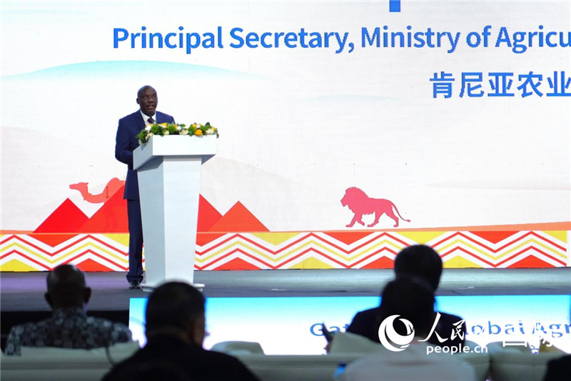 肯尼亞農業(yè)與畜牧發(fā)展部常務副部長保羅·基普羅諾·羅諾致辭。人民網記者 黃煒鑫攝