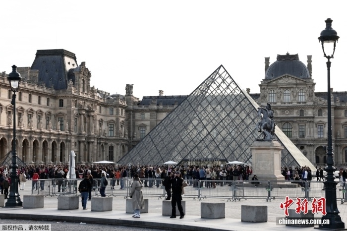 當(dāng)?shù)貢r(shí)間10月22日,在經(jīng)歷了搶劫事件三天后,法國盧浮宮重新開門,供游客參觀。圖為游客在盧浮宮外排隊(duì)。