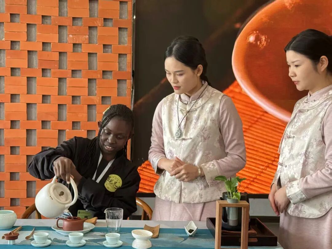 這場(chǎng)跨越國界的“重走茶道 遇見東方”之旅,也激發(fā)出年輕學(xué)子們成為文化傳播橋梁的心愿。來自泰國的中國地質(zhì)大學(xué)學(xué)生張明誠在行程中一直用鏡頭記錄,“我拍了好多視頻,為了給泰國人介紹青磚茶,因?yàn)槲矣X得大部分泰國人不知道青磚茶是什么?!彼皬奈匆娺^磚形的茶,卻在品嘗后驚喜于其醇厚與留香,漸漸喜歡上這一獨(dú)特的中國茶韻。