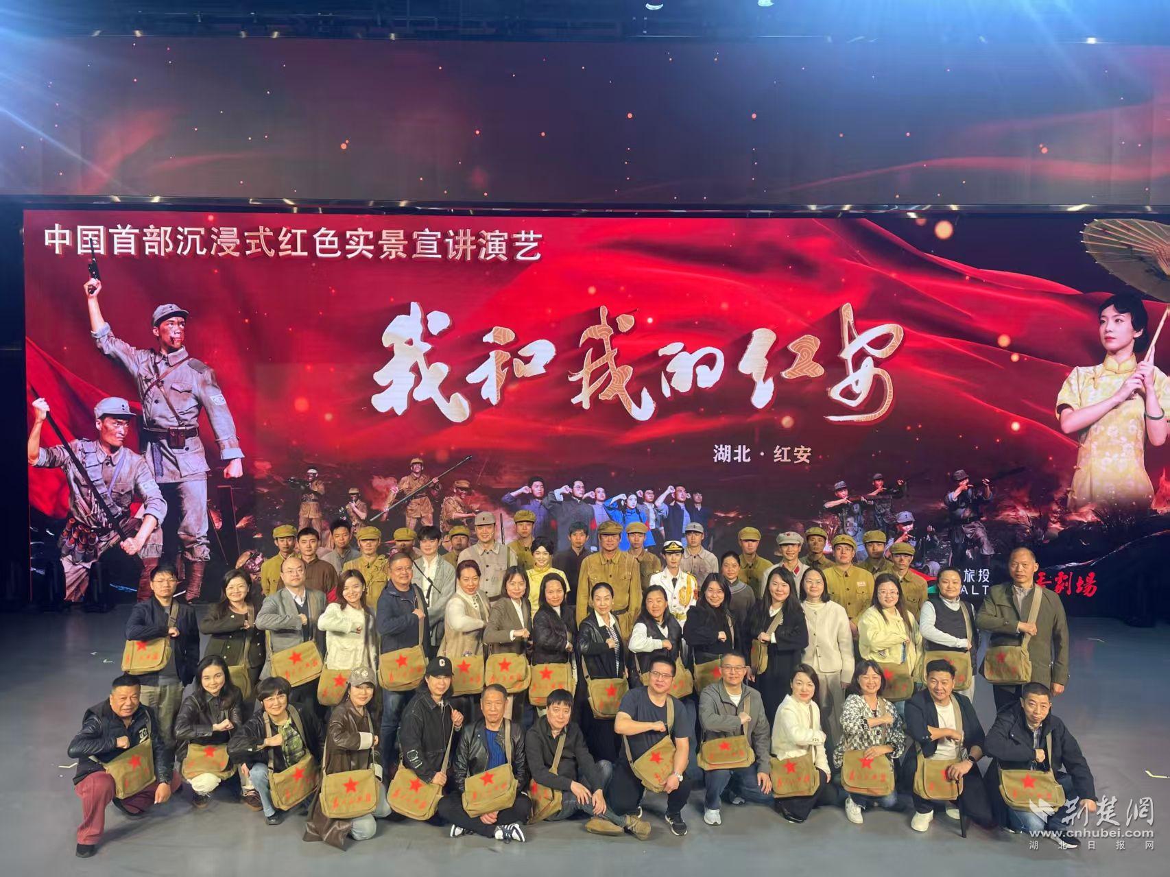 夜幕降臨,紅秀劇場燈光亮起,沉浸式紅色實景演藝《我和我的紅安》以聲光電融合的形式再現(xiàn)革命歷史。隨著劇情推進,崢嶸歲月的畫面一幕幕重現(xiàn),學員們在震撼與感動中感悟理想信念的力量。