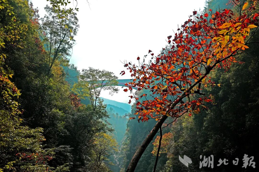 秋光正好,蝶舞清江·地心谷景區(qū)進(jìn)入一年中最富詩(shī)意的季節(jié)。峽谷兩岸層林盡染,赭紅、金黃與墨綠交織,構(gòu)成一幅流動(dòng)的山水長(zhǎng)卷。谷內(nèi)溫度宜人,溪流清冽,瀑布飛懸,空氣中富含負(fù)氧離子,是放松身心、親近自然的絕佳場(chǎng)所。