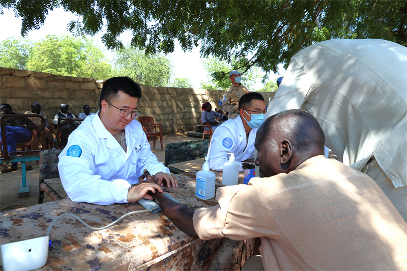 現(xiàn)場(chǎng),我維和部隊(duì)醫(yī)護(hù)人員為當(dāng)?shù)孛癖娞峁z查、診療和健康咨詢,發(fā)放針對(duì)感冒、蚊蟲(chóng)咬傷、跌打損傷等13類4600余件常用藥品,發(fā)放宣傳手冊(cè)普及傳染疾病防護(hù)知識(shí),并為醫(yī)院更換、補(bǔ)充常用藥品和醫(yī)療耗材。