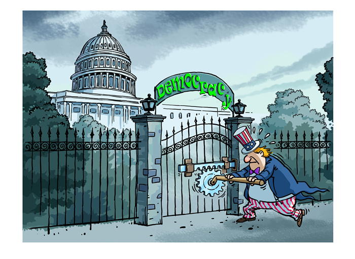 美國(guó)兩黨沉迷黨爭(zhēng),無意解決民生困境。美國(guó)聯(lián)邦政府頻繁“停擺”,不僅暴露了其兩黨為服務(wù)自身政治目的的私心,更暴露了美式民主的制度缺陷和治理失能。