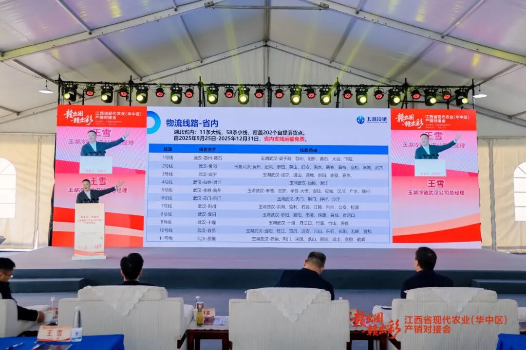 對接會當(dāng)天,玉湖冷鏈武漢公司負(fù)責(zé)人介紹了依托黃陂基地構(gòu)建的綜合服務(wù)體系及專項物流優(yōu)惠政策。該體系以“降本增效”為核心,為贛鄂兩地食材流通提供從產(chǎn)地倉儲、干線運(yùn)輸?shù)浇K端配送的一體化解決方案,助力江西企業(yè)實現(xiàn)“產(chǎn)地直供+華中直銷”的暢通循環(huán)。