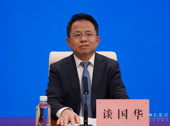 黃石市商務(wù)局黨組書記、局長(zhǎng)談國華答記者問。金康 攝