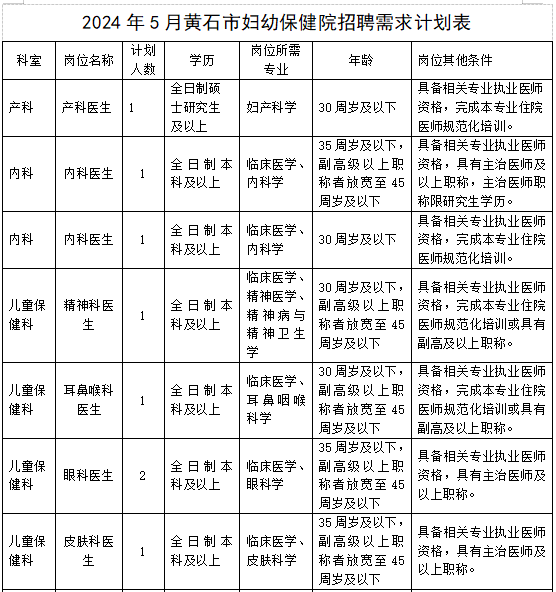 公告稱,即日起至5月21日上午09:00(周六日除外),應聘者可攜帶資料到黃石市婦幼保健院人事科教科進行現(xiàn)場資格審查。