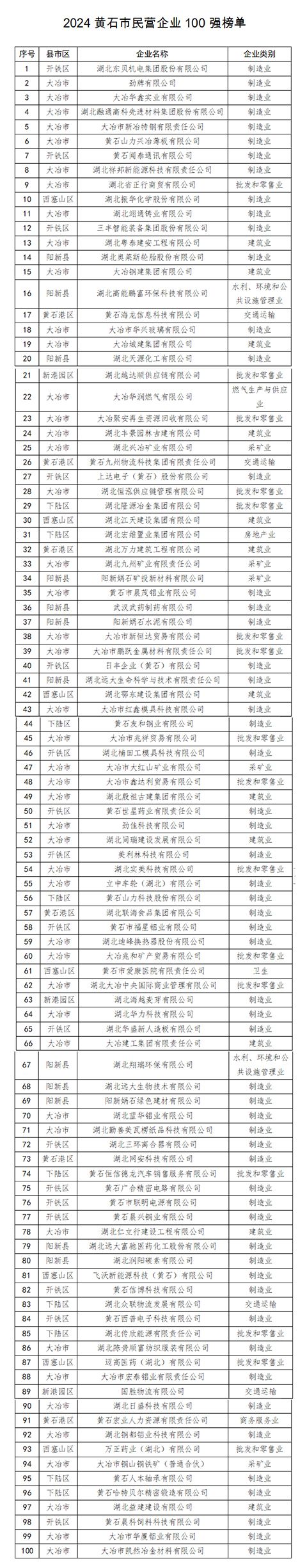 荊楚網(wǎng)(湖北日?qǐng)?bào)網(wǎng))訊(記者 阮瓊 通訊員 李玉)“民營(yíng)經(jīng)濟(jì)增加值占GDP比重達(dá)60.5%,已成為市域經(jīng)濟(jì)的重要支撐……”7月9日,在黃石市促進(jìn)民營(yíng)經(jīng)濟(jì)健康發(fā)展新聞發(fā)布會(huì)上,黃石市委統(tǒng)戰(zhàn)部副部長(zhǎng)、市工商聯(lián)黨組書記柯碧松公布《2024黃石市民營(yíng)企業(yè)100強(qiáng)榜單》。