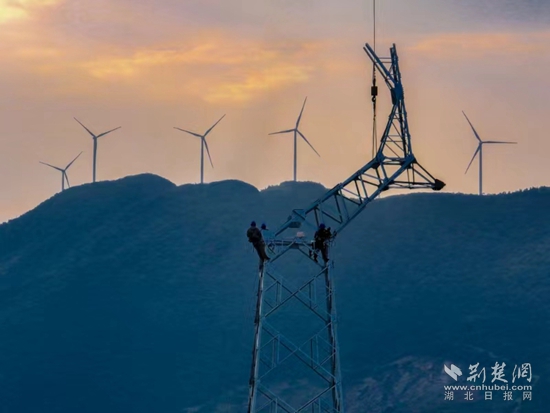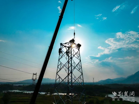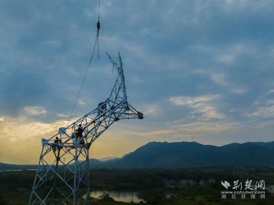 荊楚網(wǎng)(湖北日?qǐng)?bào)網(wǎng))訊(通訊員曹祥魁 袁勝)8月23日下午5點(diǎn),黃石陽新縣陶港鎮(zhèn)祠堂畈附近,40多米高鐵塔上4名電力工人渾身濕透,他們扶著頭頂上吊車吊過來的鐵部件,開始了最后“一吊”的組塔工作。