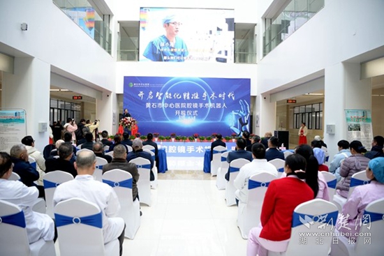 黃石市中心醫(yī)院院長袁明在開機(jī)儀式上致辭,他表示,黃石市首臺腹腔鏡機(jī)器人在黃金山院區(qū)投入使用, 將極大地推動黃石市中心醫(yī)院外科技術(shù)的發(fā)展。黃石市中心醫(yī)院將以此技術(shù)開展為契機(jī),進(jìn)一步提高醫(yī)療質(zhì)量,為黃石市衛(wèi)生健康事業(yè)高質(zhì)量發(fā)展作出新的更大貢獻(xiàn)。