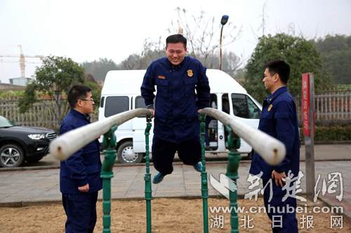 圖為開(kāi)展單雙杠科目現(xiàn)場(chǎng)。 通訊員 朱燕林?jǐn)z