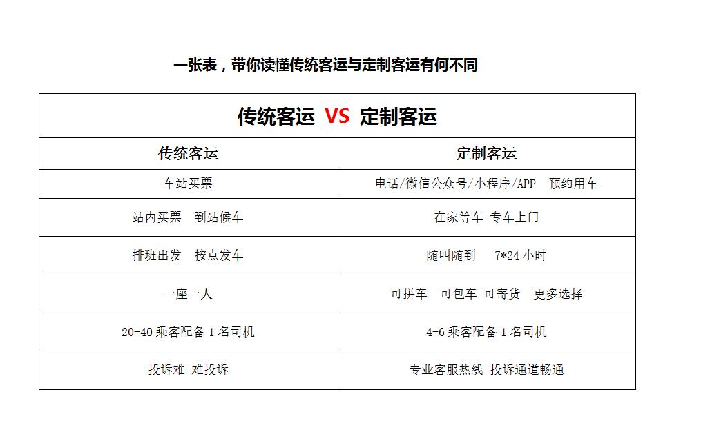 與傳統(tǒng)客運大巴相比,定制客運采用的是更為靈活的5座轎車或7座商務(wù)車,可以實現(xiàn)點對點、門對門的上門接送服務(wù),減少旅客倒車、候車之苦。并且隨叫隨到,每日24小時在線,所有服務(wù)均提供正規(guī)發(fā)票和保險保障。