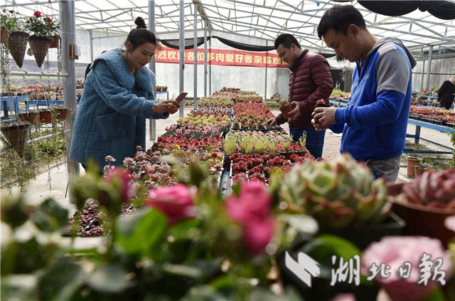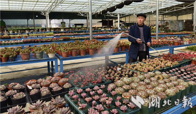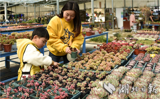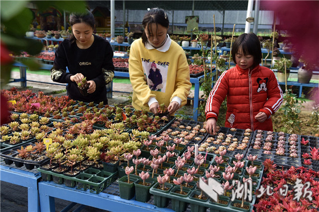 3月10日,在湖北省通城縣馬港鎮(zhèn)界上村東山大屋多肉植物種植大棚社員忙著移栽、管理、銷售多肉植物。連日來,湖北省通城縣馬港鎮(zhèn)界上村東山大屋多肉植物種植花卉大棚里春意盎然,五顏六色的多肉小盆栽連綿成花海,顏色豐富多彩,吸引游客拍照、購買,開展親子活動(dòng)。