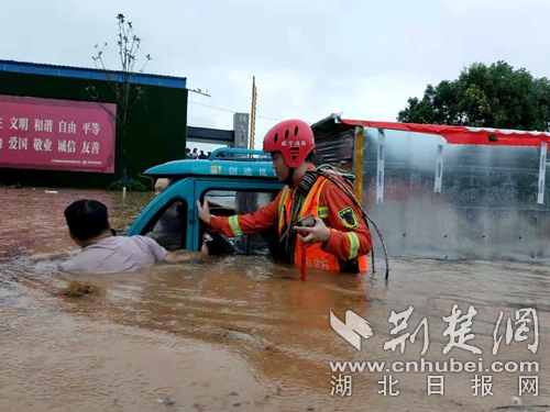 荊楚網(wǎng)客戶端—荊楚網(wǎng)消息(通訊員 朱燕林 官易洲 劉太鋼)6月21日10時19分,由于突降暴雨,導(dǎo)致湖北省咸寧市書臺街與金桂路交匯處往錦龍路附近發(fā)生內(nèi)澇,多輛車被淹,人員被困。接到報警后,咸寧市消防支隊緊急迅速趕赴現(xiàn)場展開救援。