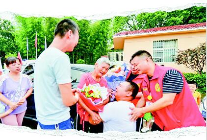 6月29日清晨7時(shí)許,一輛轎車駛出京港澳高速咸寧泉口收費(fèi)站,緩緩?fù)O隆T诹x工的攙扶下,一位白發(fā)婆婆顫顫巍巍地下車。37歲的余軍雙腿跪下,抱著她痛哭起來:“媽,你上哪兒去了,怎么才回來……”在場(chǎng)的親人和義工們無不潸然淚下。