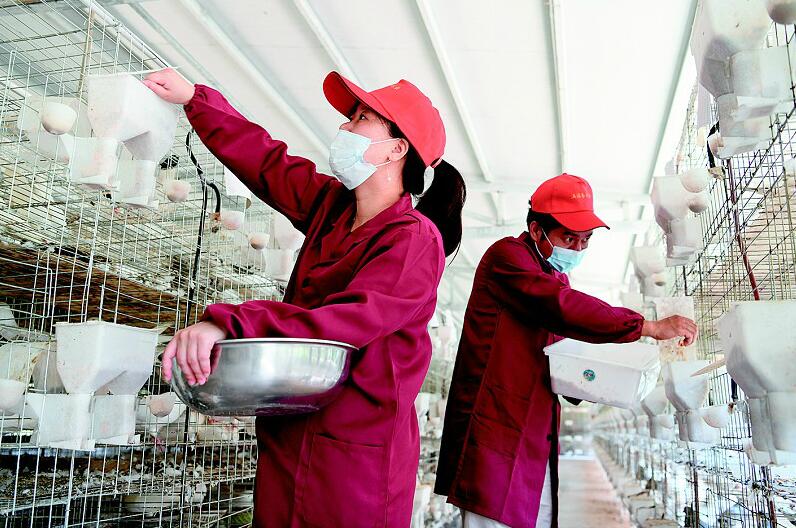 7月3日,通城縣北港鎮(zhèn)大界村土鴿養(yǎng)殖專業(yè)合作社社員在給土鴿喂食。該合作社是通城返鄉(xiāng)創(chuàng)業(yè)女青年劉慶創(chuàng)辦,建設標準化土鴿養(yǎng)殖基地,飼養(yǎng)近萬對土鴿。合作社采取“支部+合作社+基地+貧困戶”模式,吸納當地30戶貧困戶打工就業(yè),10戶貧困戶入股分紅,帶動周邊近百戶貧困戶發(fā)展養(yǎng)鴿增收脫貧。