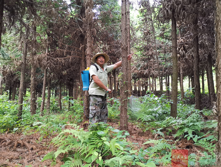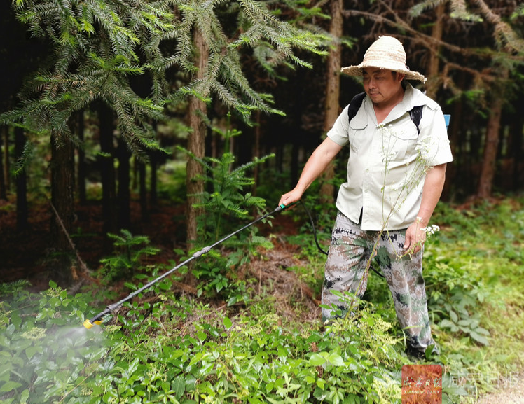 “現(xiàn)在正是噴藥的最好時機,能夠有效抑制雜草生長,讓樹木正常生長,還能防止突發(fā)山火時火勢蔓延過快!”6月24日,雨過天晴,在通山縣黃沙鋪鎮(zhèn)下陳村的一片林子里,王能新邊噴灑農(nóng)藥邊說。