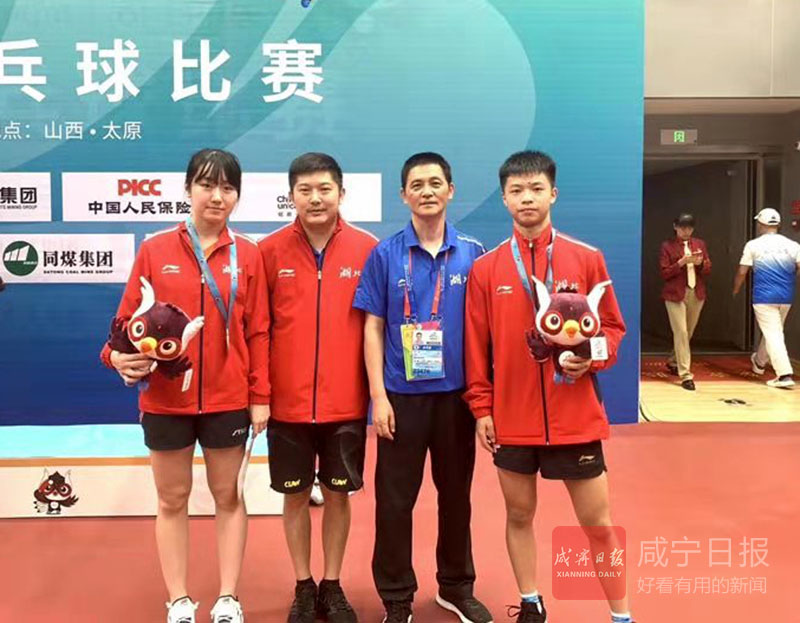 咸寧網訊(香城都市報記者王奇峰 特約記者耿海軍)8月18日,第二屆全國青年運動會在山西太原閉幕,咸寧籍少年熊夢陽與隊友站上乒乓球項目混雙季軍領獎臺。