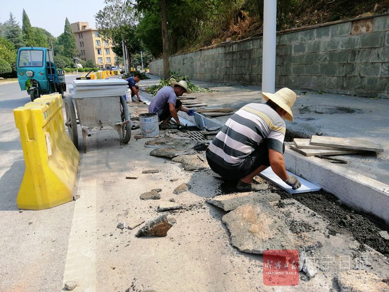咸寧網(wǎng)訊(香城都市報記者周陽 通訊員許勝利 李沁)市區(qū)麥笠山路地處溫泉旅游核心區(qū),毗鄰潛山國家森林公園,是重要的城市景觀道路。9月12日上午,記者看到,該道路潛山廣場至袁家灣路口路段700多米人行道正在進(jìn)行升級改造,施工現(xiàn)場一片繁忙,工程車輛鋪裝混凝土、工人們開挖人字溝、鋪設(shè)流水板……