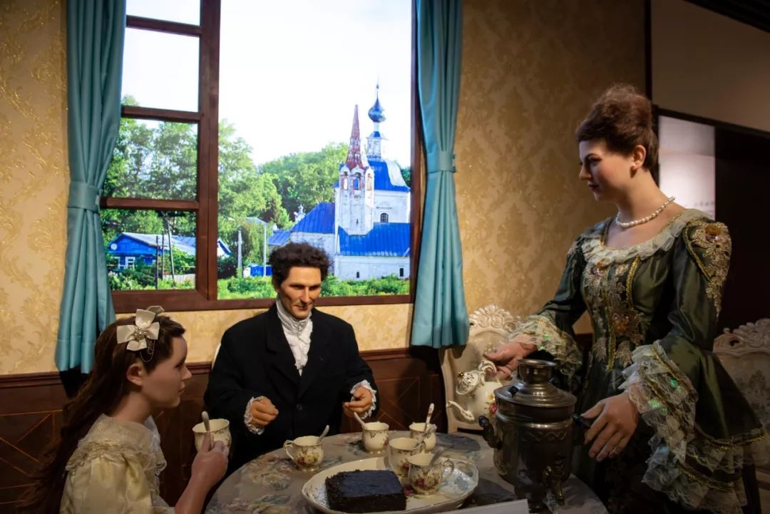 “俄羅斯人品嘗青磚茶”場景蠟像