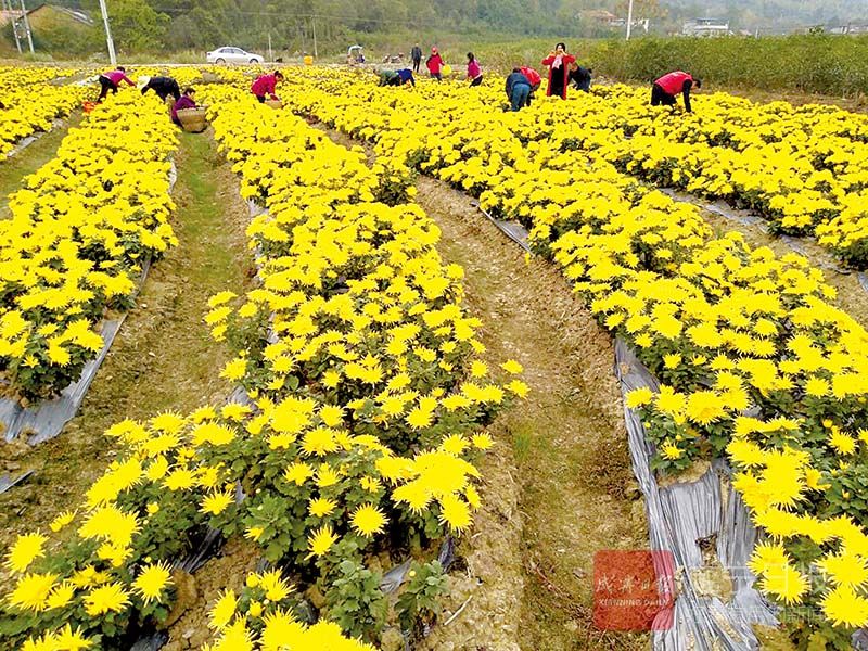 為了發(fā)展村級集體經(jīng)濟和帶動貧困戶就業(yè),咸安區(qū)桂花鎮(zhèn)黨委政府轉(zhuǎn)變思路,在萬壽橋村十一、十二組及時調(diào)整種植模式,試種40畝菊花。目前,正值菊花盛開的時節(jié),村民們正在忙著采摘菊花。