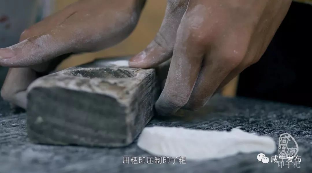 印子粑是咸寧鄉(xiāng)村廣為流傳的民俗食品,一般在春節(jié)和孩子一歲生日時(shí)制作。粑印用木制,每個(gè)粑印有1-3個(gè)空模,形狀一般只有小茶杯口大。粑印里刻有反向的如魚(yú)以及花、草等各種動(dòng)植物圖案,制作出來(lái)的粑邊緣有一圈花紋,形象生動(dòng),栩栩如生。堆成的粑山,晶瑩透亮,造型美觀,堪稱優(yōu)秀的民間藝術(shù)品。