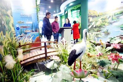 12月3日,咸安區(qū)向陽湖國家濕地公園科普宣教展館,游客跟隨講解員參觀湖地生態(tài)動(dòng)植物微景觀。該館是青少年自然教育拓展基地,投資300多萬元,融入4D元素,于11月中旬建成開館,以立體化、沉浸式體驗(yàn)提高科普的教育性、生動(dòng)性和觀賞性。