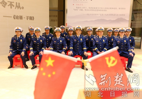 圖為消防指戰(zhàn)員全體學(xué)習(xí)黨章現(xiàn)場(chǎng)。通訊員 朱燕林?jǐn)z