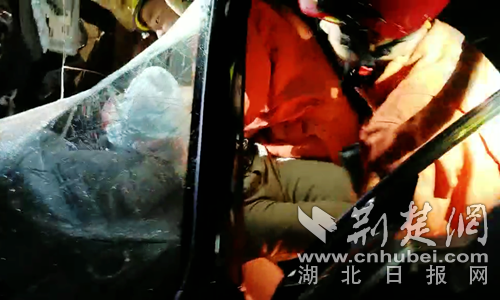 圖為消防員救出司機現(xiàn)場。 曾水生攝