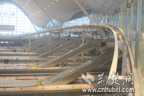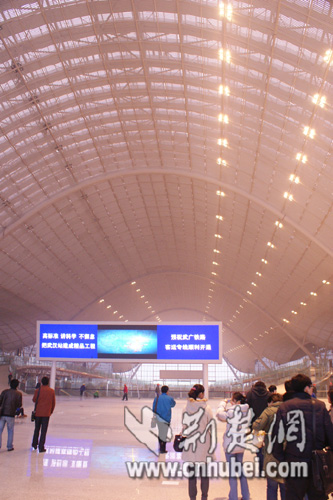 記者拍攝武漢火車(chē)站候車(chē)大廳