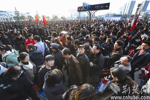 記者還多次到武漢的各個(gè)火車站采訪,總體印象是武廣高鐵的運(yùn)營(yíng),對(duì)于武漢這個(gè)運(yùn)輸重點(diǎn)城市的春運(yùn)工作,帶來了很大的減緩壓力作用,武廣高鐵的運(yùn)營(yíng)模式是緩解春運(yùn)巨大壓力的一個(gè)方向。