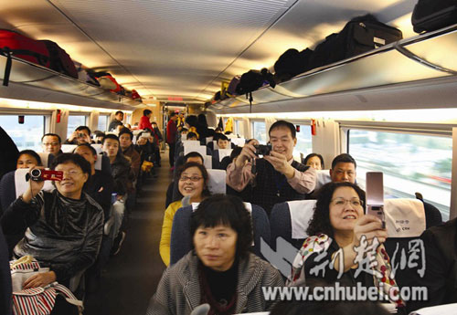 荊楚網(wǎng)消息 (楚天金報記者譚新杰 通訊員郭金富、劉強)12月26日上午9時,三列嶄新的時速350公里“和諧號”高速列車從武漢站、長沙站和廣州北站同時首發(fā),標(biāo)志著目前世界上運營速度最快、一次性建成里程最長的高鐵新干線——武廣客專正式投入運營!瓣懙仫w行下廣州,千里南國一日還”的時代已經(jīng)到來。